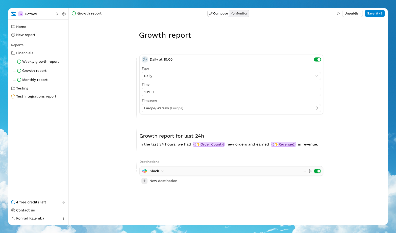 Get custom reports delivered to your Slack workspace
