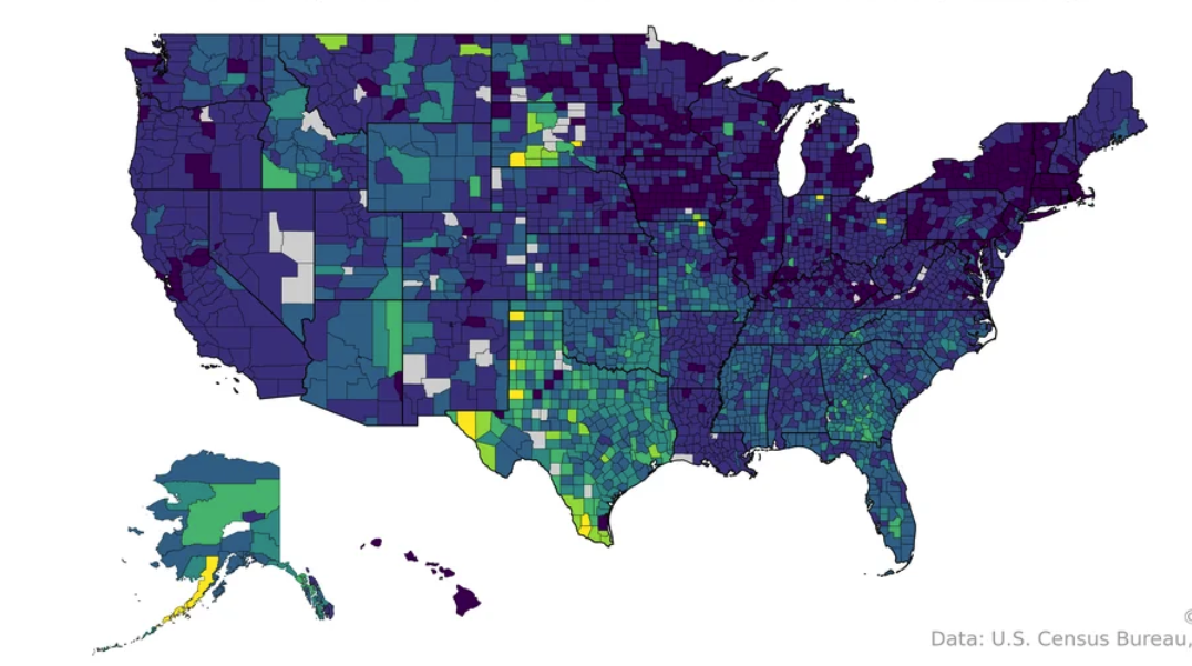 Today’s graphic: Percent of Population without Health Insurance, by County (U.S.). (Graphic courtesy of Reddit and ZipCrawl.) The thumbnail below is click-expandable. From the ZipCrawl website: NOTE: Gray indicates insufficient data or a suppressed estima…