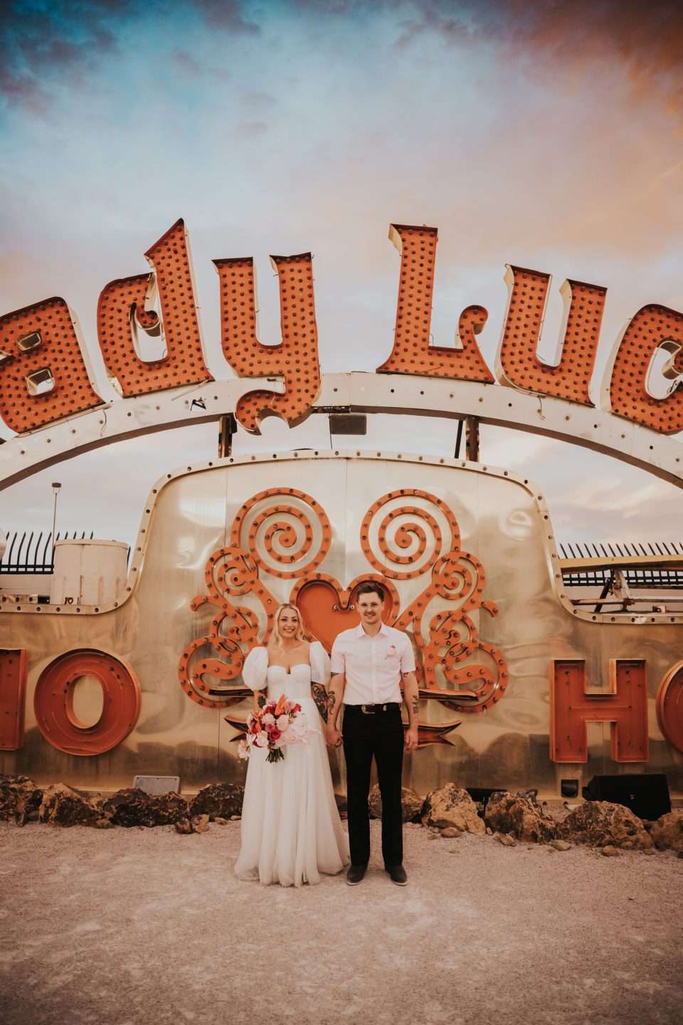 Beth and Elliott, who travelled to Vegas from the UK for their wedding, described their day as “Fun, flirty, and so Vegas!” They brought some close friends and family members with them and treated the whole experience like a holiday. “Honestly, we just know w…