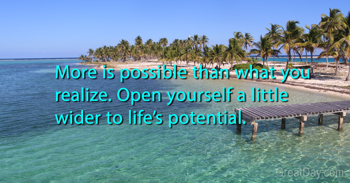 More is possible than what you realize. Open yourself a little wider to life’s potential.